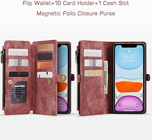 4.【Card Slots & Zipper & Wristlet】: iphone 11 case wallet includes 10 card holder + 1 zipper bag + 1 cash slots,hold your ID,credit cards,driver license,bills,coins and a little bit cash without problems. The zipper has been tested more than 5000 times; With a removable lanyard strap,providing a optional griping method.