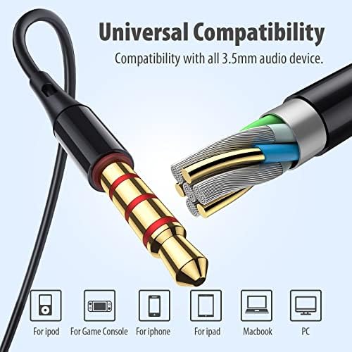 [WIDE COMPATIBILITY]- 3.5 mm earbuds wired audio jack compatible with iPhone, Android Smartphones, Laptops or any device which has a 3.5mm audio port. With the gold plated connector, you can have a stable sound transmit from your devices.
