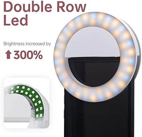 🍏【Dimmable Ring light with 3 Light Modes】Easily switch 4-levels brightness and 3-light modes of warm light, white light and natural light, suitable for your numerous uses in different circumstances. As long as your device’s thickness is less than 1.2 inches, you can easily clip the light on, such as cell phone, iPad or laptop.