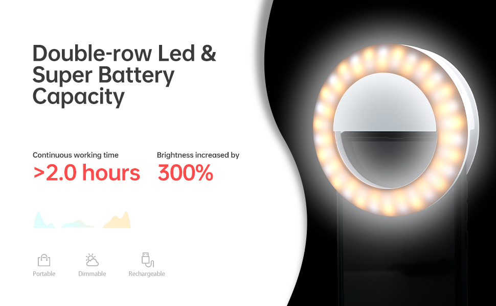 🍋【Great battery capacity super long stand-by】For your makeup / live broadcast / YouTube videos, etc., we specially upgraded this ring light to a large capacity battery of 600 mAh, which can be used continuously for 2 hours after full charge.