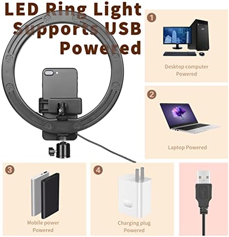 The led ring light is with 3 light modes & 10 adjustable brightness for your choose. 360° Rotation Angle for ring light whcih allows you to find the perfect angle to light your subject.