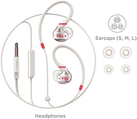 TCL Actv100 in-Ear Earbuds Active Noise Isolating Wired Secure Fit Sweatproof Headphones with Built-in Mic – White