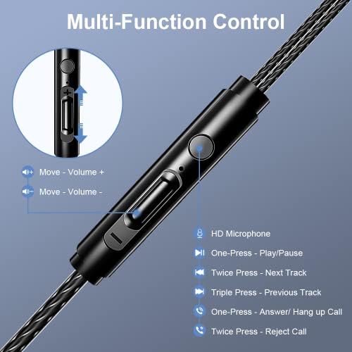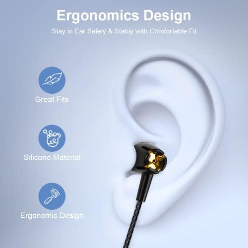 【Comfortable Fit】The wired earbuds are lightweight, flexible and fit your ears perfectly with a ergonomic In-ear structure design; the ear tips are soft, it provide you comfortable fit even for a long period of time of wearing.